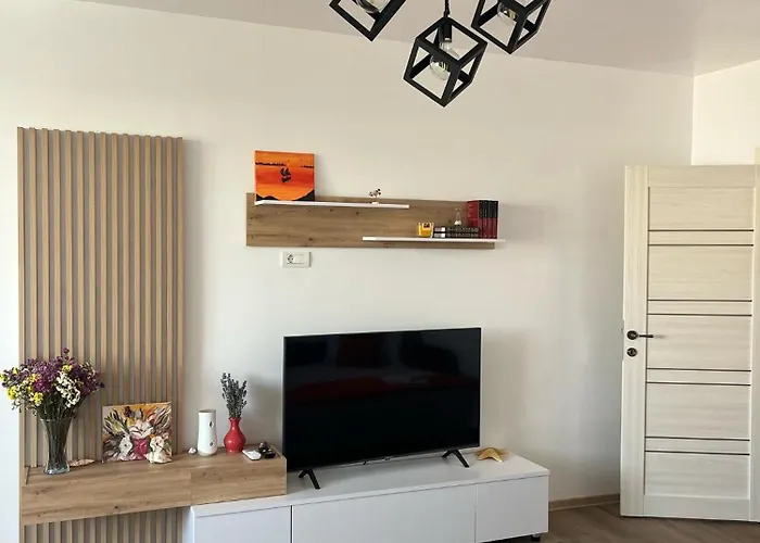 L'appartement fournit une cuisine équipée avec un réfrigérateur et un four. La gare routière Giratoriu est à côté de cet immeuble.